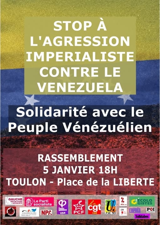 lundi 05 janvier 2026 Toulon, solidarité avec le Venezuela... Auteur : admin NPA 06 Share Catégories : Actualités 83... 0 commentaire Lien permanent