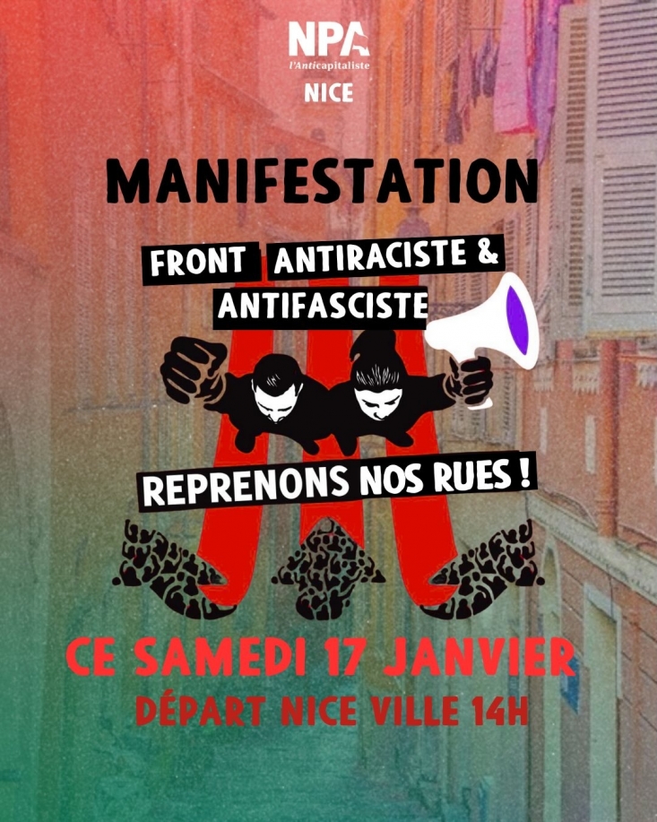 mercredi 14 janvier 2026 Nice antifasciste ! Auteur : admin NPA 06 Share Catégories : Actualités 06... 0 commentaire Lien permanent